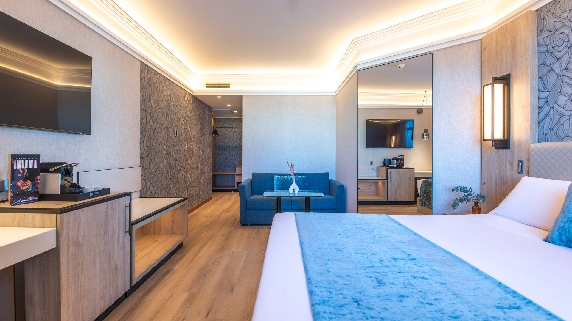 Las habitaciones superiores destacan por su amplitud, con una dimensión de 30m2. Están compuestas por una cama de 180x200 cm y un confortable sofá cama de 120x200cm. Siéntete como en casa y vive un lujo que jamás habías imaginado. ¡Te esperamos en tu hotel favorito para sentir la energía madrileña!